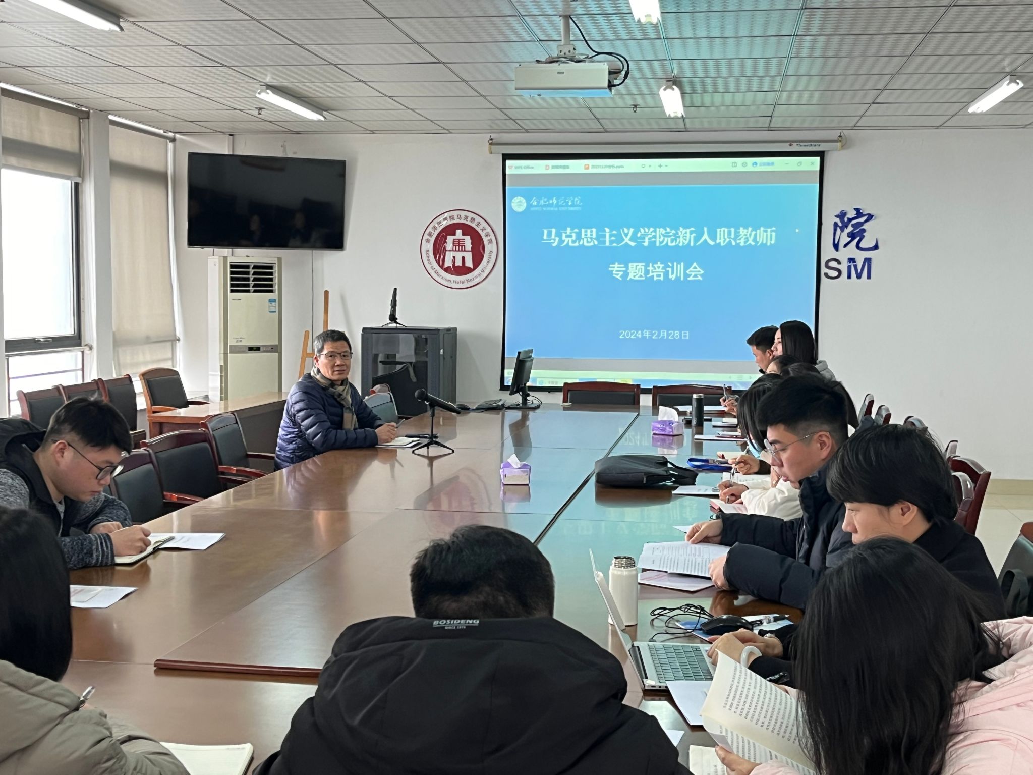 近日,为提升新进思政课教师综合素质,努力造就一支可信可敬可靠、乐为敢为有为的思政课教师队伍,亚洲视频一区二区在行知楼1610会议室举办新入职思政课教师专题培训会,全体新入职思政课教师参加培训会。