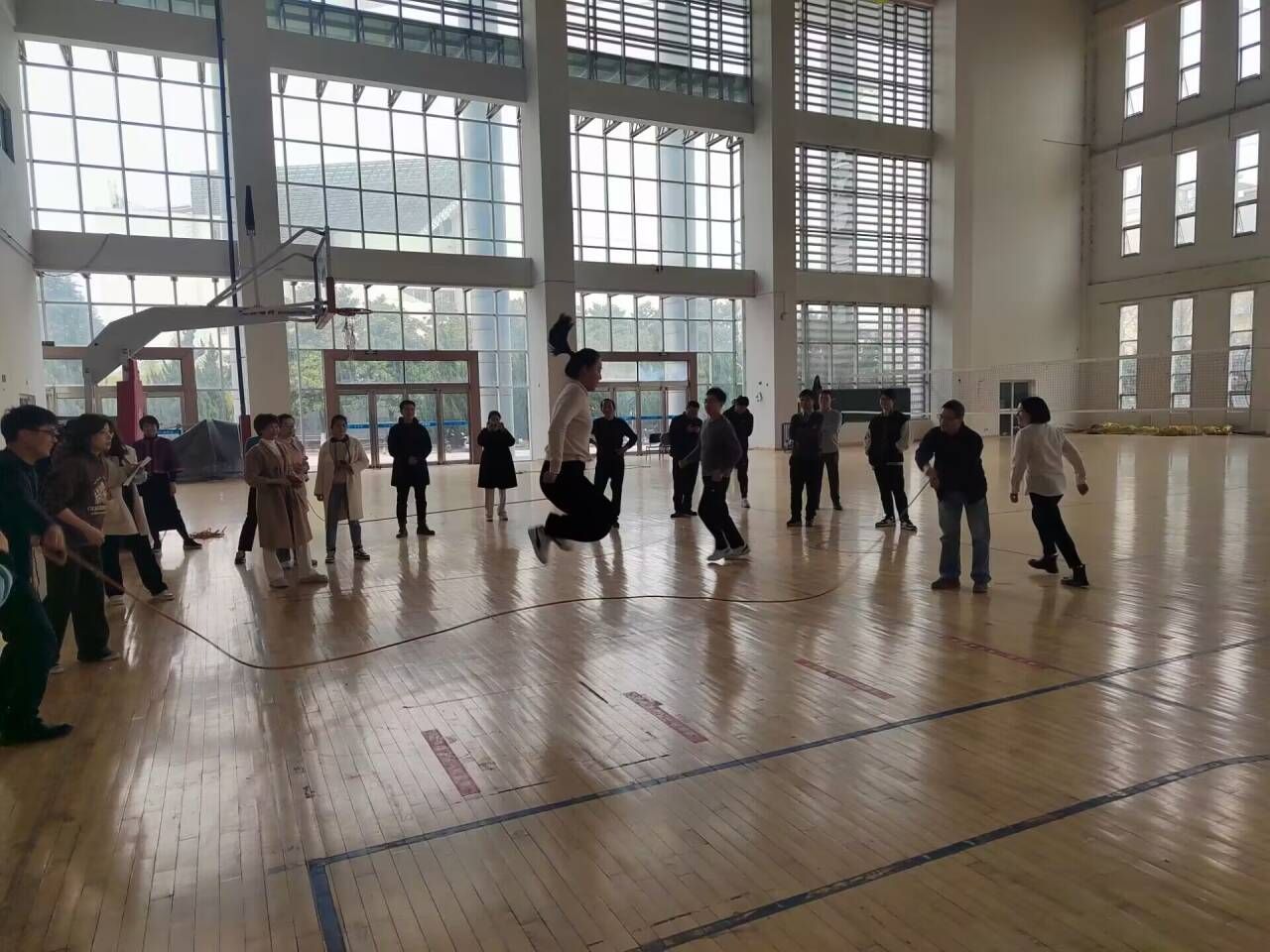 3月13日下午,学院在锦绣校区体育馆举办趣味集体跳绳比赛。本次比赛由院分工会主办,全院教职工及部分学生参加。