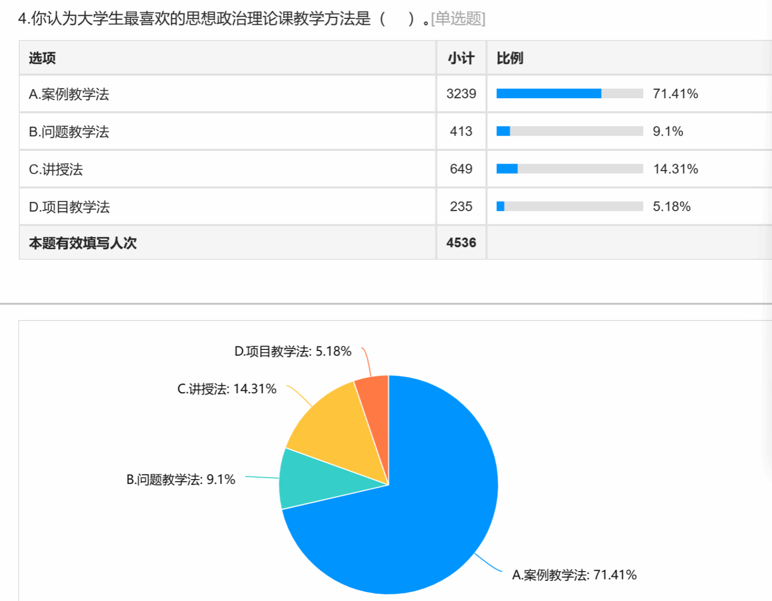 为了掌握学校思想政治理论课学情,持续改进思想政治理论课教学,提升大学生学习思想政治理论课获得感,新学期伊始,学院组织教师开展思想政治理论课学情调查,《中国近现代史纲要》《思想道德与法治》《马克思主义基本原理》《毛泽东思想和中国特色社会主义理论体系概论》《习近平新时代中国特色社会主义思想概论》等课程共4536名学生通过问卷星网站在线填写了调查问卷。