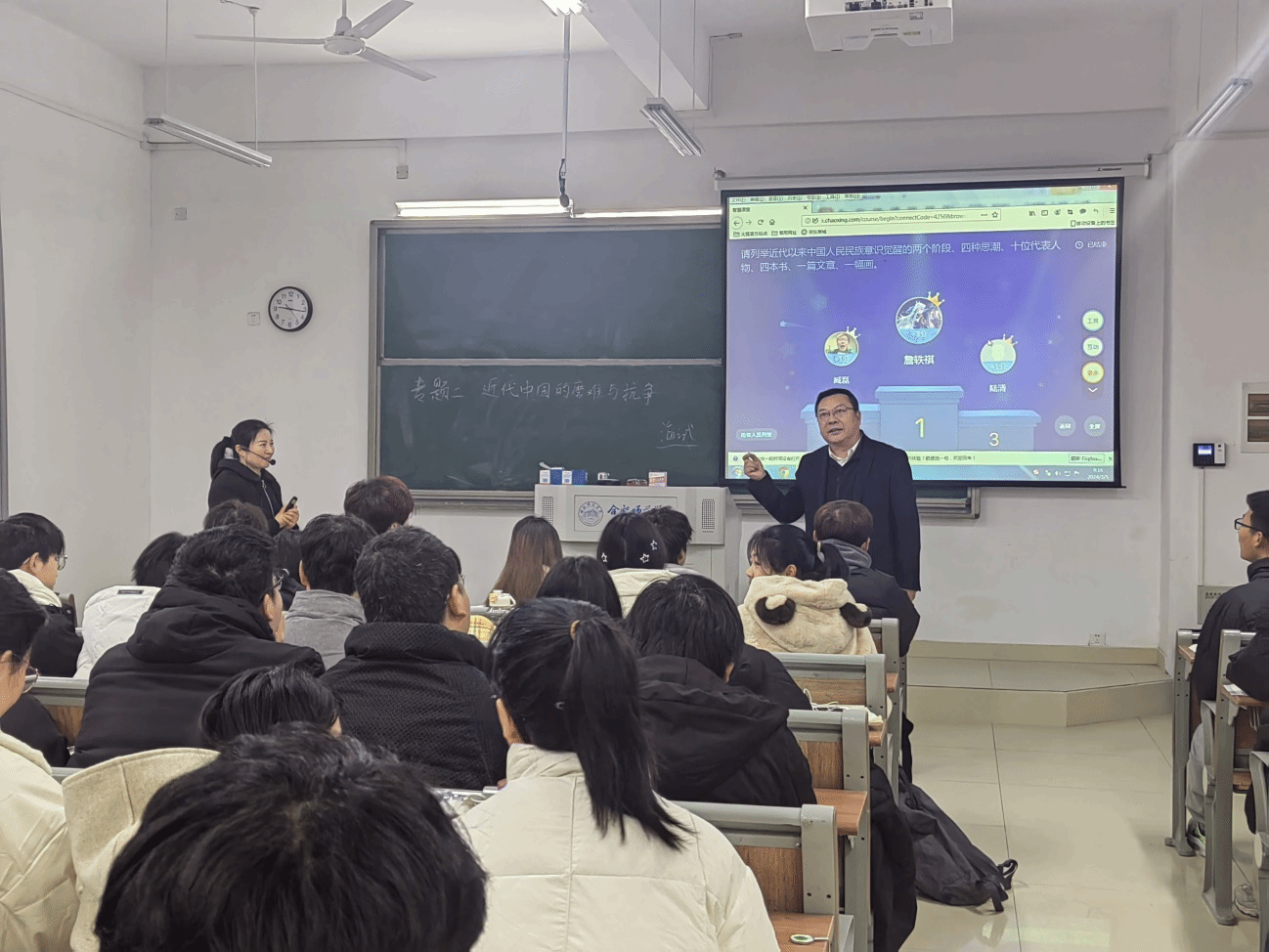 五年来,学院积极探索思政课教学改革创新,制定《合肥师范学院思想政治理论课“提质增效”行动方案》,以教学改革不断推动思政课教学质量提升。一方面,树立“好课多磨”导向,创新“一课四备”,坚持以“如何上好一堂课”为主题,以学生身边事为例,常态化做实备课磨课活动,有效地推动思政课教学质量提升,课堂吸引力也得到提高。另一方面,创新课堂教学模式,基于“思政课的本质是讲道理”,为了把道理“讲深、讲透、讲活”,探索“多人同上一堂思政课”,充分发挥不同学科背景老师在思政课教学中的作用,以课堂魅力的提升保证课堂“到课率”“抬头率”,不断增进学生学习思政课的获得感。