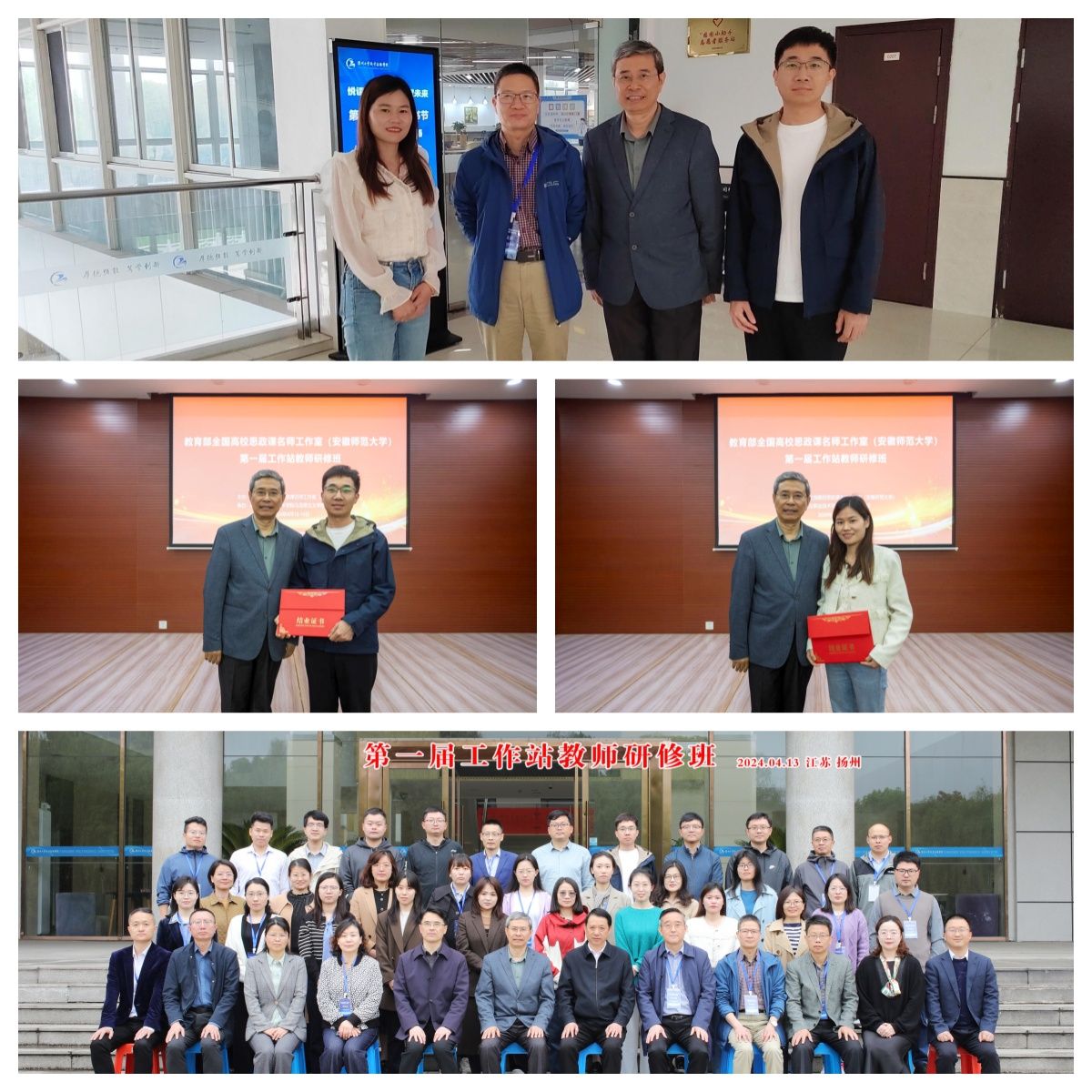 4月12日至14日,教育部全国高校思政课名师工作室(安徽师范大学)第一届工作站教师研修班结业仪式在扬州工业职业技术学院亚洲视频一区二区举行。来自全国4省份、12所院校、30多位高校青年思政课教师参加了研修班结业仪式,亚洲视频一区二区院长何光辉、政法系主任周继祥参加了此次结业仪式。青年教师郝嘉乐和姜彩红经过两个学期的一对一名师指导顺利完成研修目标从研修班毕业。