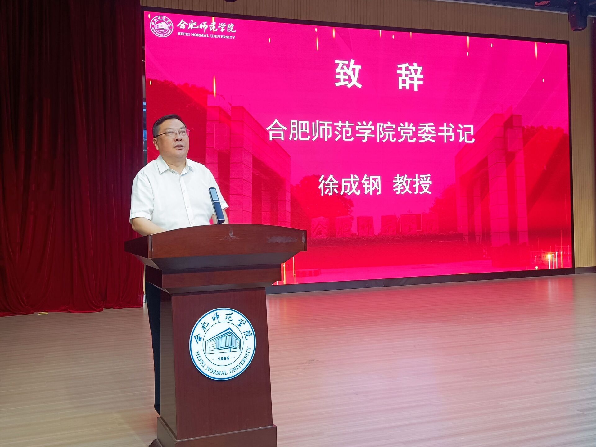 决赛伊始,党委书记徐成钢致辞。徐成钢指出,合肥师范学院党委认真贯彻习近平总书记重要指示精神,深入落实《关于深化新时代学校思想政治理论课改革创新的若干意见》,积极推动思政课教学模式改革,通过创新“一课四备”,探索“多师同上”一堂思政课,不断提高思政课的针对性和吸引力,持续推进思想政治理论课高质量建设和内涵式发展。当前,学校已形成党委统一领导、党政齐抓共管、有关部门各负其责、协同配合的思想政治理论课建设工作格局,形成了奋力推进思政课高质量发展的良好态势。