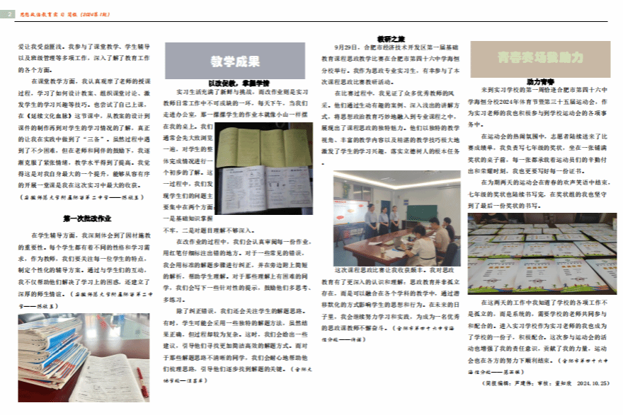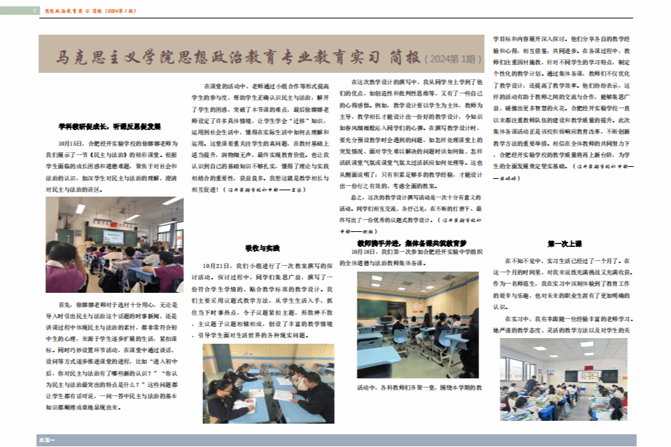 新闻动态 当前位置: 主页 >> 新闻动态 >> 正文 亚洲视频一区二区思想政治教育专业教育实习简报(2024第1期) 发布日期:2024-10-28 编辑:高欢 核稿:方政 终审:刘艳 点击: 附件【亚洲视频一区二区-思想政治教育-教育实习简报(2024第1期) .pdf】已下载次