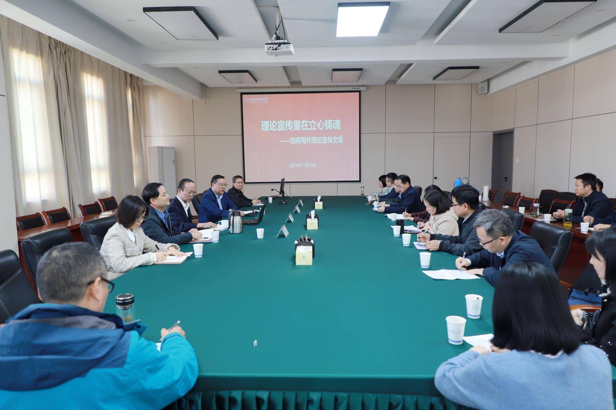郝永平以“理论宣传重在立心铸魂——如何写作理论宣传文章”为题,分别从“精确领会”“精准选题”“精心布局”“精细把控”四个方面,用自己深厚的学术积淀和丰富的写作经验,从宏观到微观、从历史到现实、从理论到实践,结合剖析已发表的文章,对如何写作理论宣传文章作了深入细致的阐释和讲解。报告内涵丰富、逻辑严谨,既有政治高度,又有理论深度,更有实例解析,对广大思政课教师深入学习贯彻习近平新时代中国特色社会主义思想,写好高质量的理论宣传文章,具有很强的针对性和指导性。