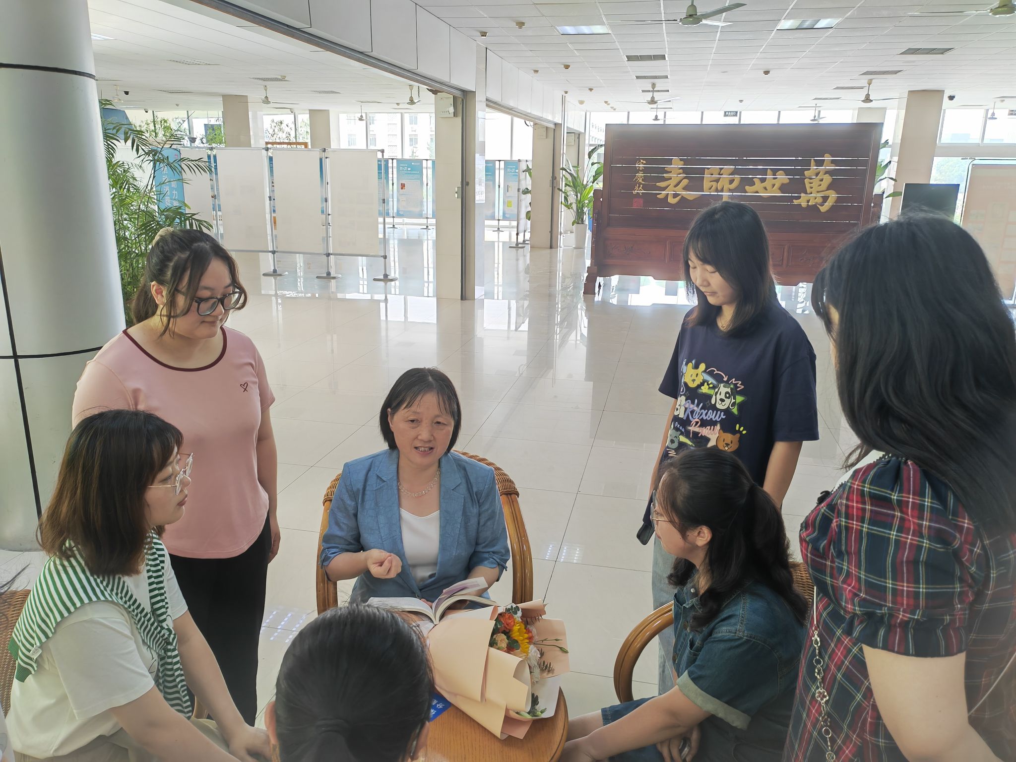 傅文茹老师课后与学生交流听取“思政+专业”授课建议