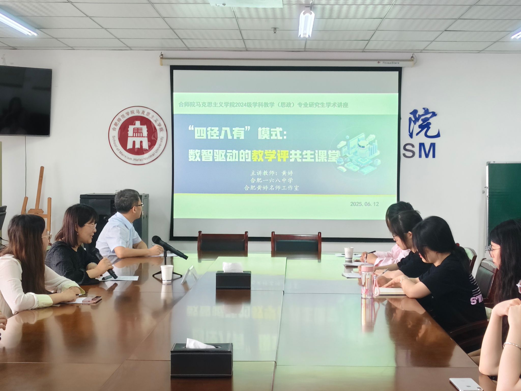 为提升学科教学(思政)研究生教育教学技能,掌握中学思政课教学改革前沿,6月12日上午,亚洲视频一区二区邀请合肥一六八中学名师黄婷老师在行知楼1610作“‘四径八有’模式:数智驱动的教学评共生课堂”的学术讲座。2024级学科教学(思政)专业研究生50余人聆听了讲座,讲座由研究生教学部主任朱玉利主持。