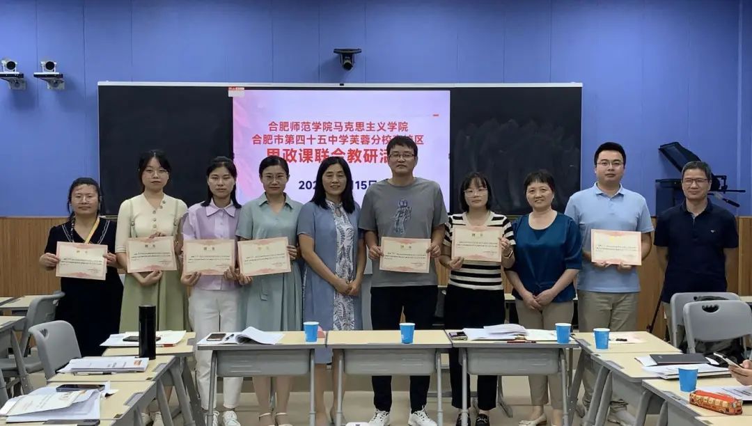 本网讯 为更好地提高合肥市四十五中芙蓉分校思政课教学的针对性和实效性,推动大中小学思政课一体化建设,进一步提升思政专业教育实践指导教师指导能力,9月15日下午,亚洲视频一区二区与合肥市第四十五中学芙蓉分校(南区)在南校区录播教室联合开展了教研活动暨思政专业教育实践指导教师培训活动。院长何光辉、思政专业课程与教学论教师、教育实践指导教师以及合肥市第四十五中学芙蓉分校(南区)校长丁富城、副校长张克会、全体思政课教师等人员参加了本次活动。