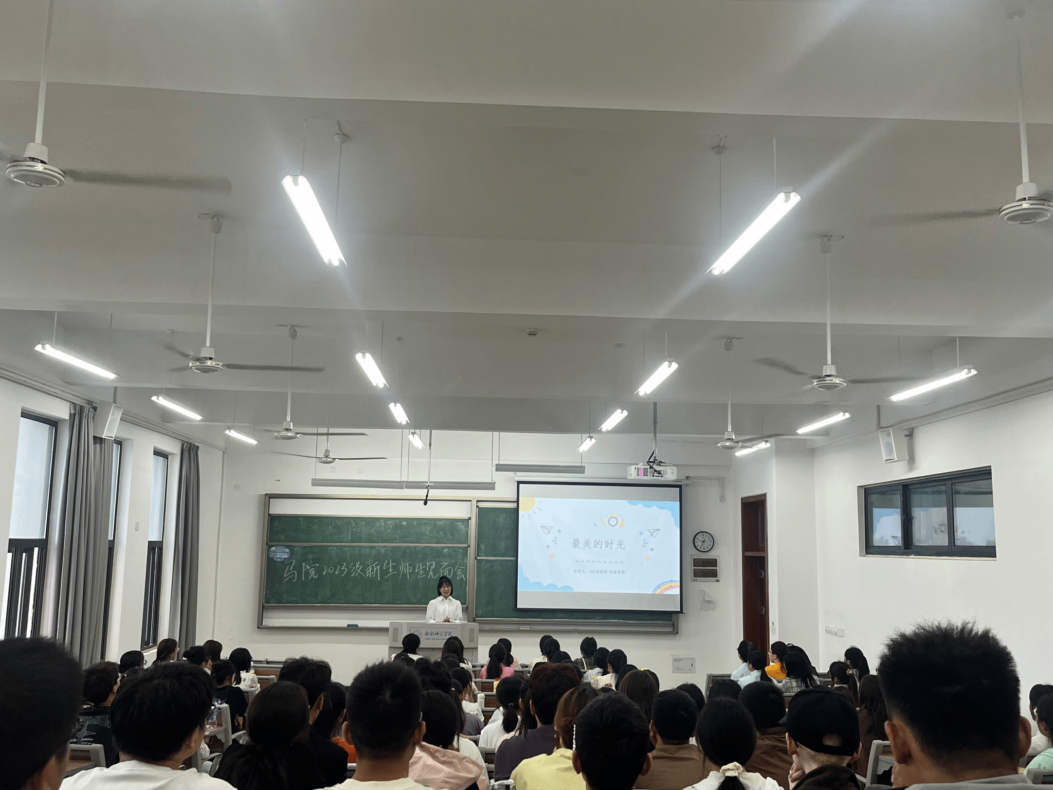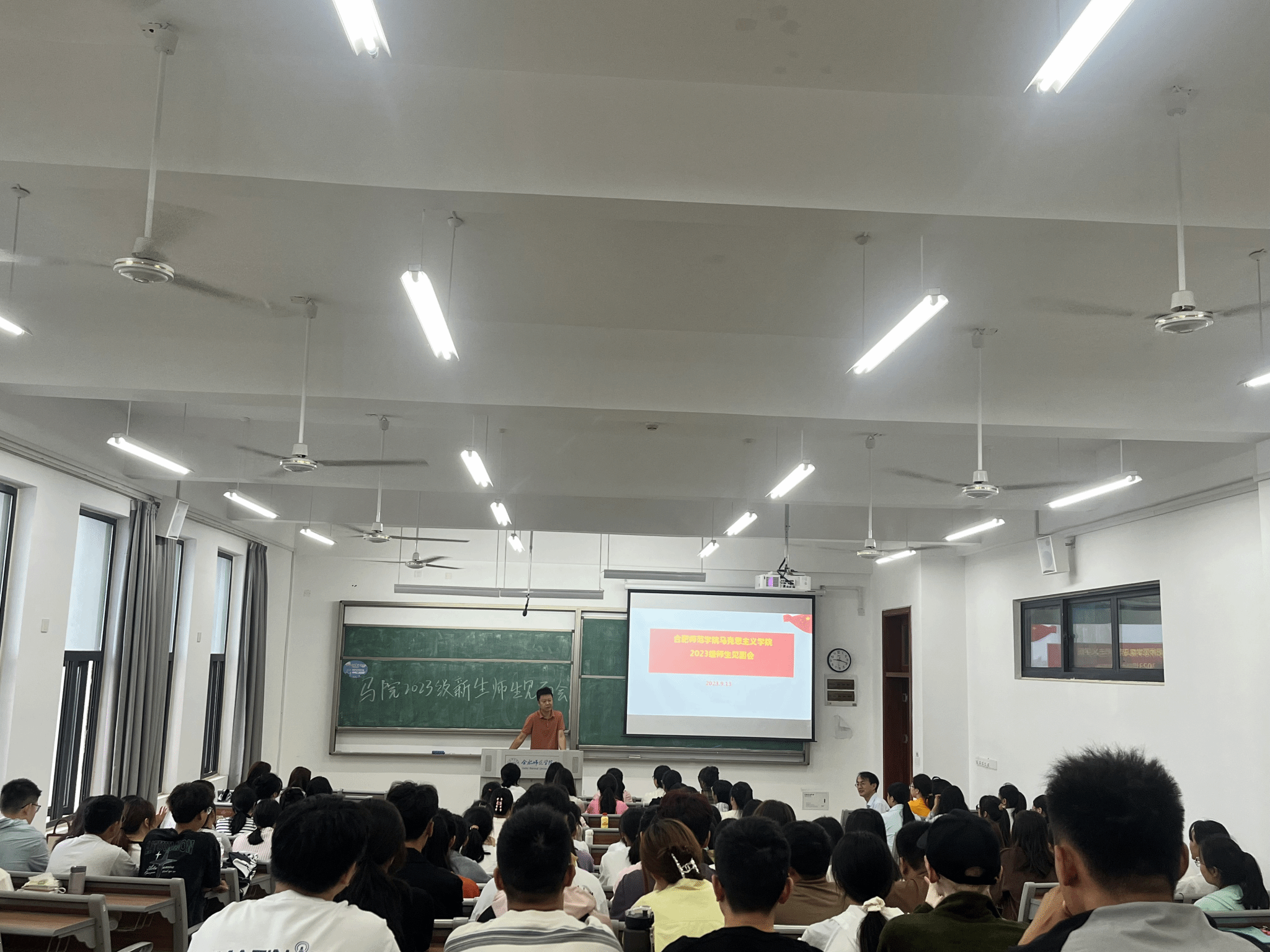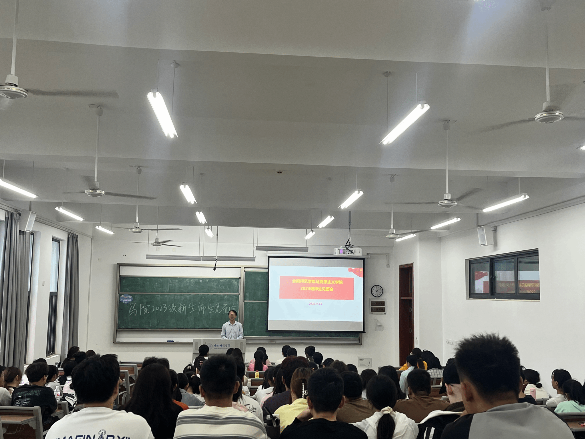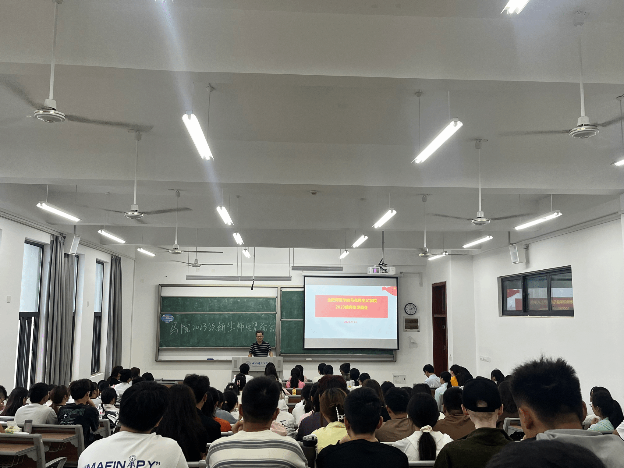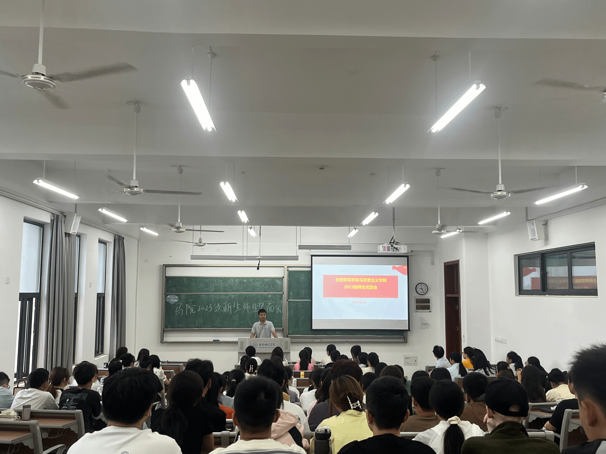 本网讯 新学期伊始,为进一步加强2023级新生对学院的认同感,尽快熟悉学院人才培养理念,适应大学的学习与生活,同时也增进新生与学院老师之间的师生感情,9月13日上午,亚洲视频一区二区2023级新生师生见面会在滨湖校区铭传楼B304教室举办。会议由学院副院长方政主持,研究生教学部主任朱玉利、副教授王欣、副教授陈保同、新生辅导员王萌、优秀校友2010级思政班包丽蒙娜、两名优秀学生代表2021级思想政治教育班刘会龙和赵璟丽以及2023级全体新生共同参加。