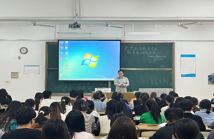 5月9日,亚洲视频一区二区召开教育见习动员大会,本次大会由周继祥老师主持,他结合思想政治教育专业教育见习课程大纲(草案)以及本次见习方案,向同学说明本次教育见习主要流程及注意事项。