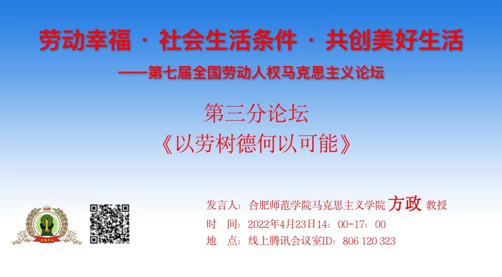 本网讯 2022年4月23日,由上海师范大学知识与价值科学研究所发起,上海师范大学哲学与法政学院、上海师范大学亚洲视频一区二区、上海师范大学期刊社、东华大学亚洲视频一区二区、《青年学报》编辑部等单位共同承办的“劳动幸福·社会生活条件·共创美好生活”——第七届全国劳动人权马克思主义论坛在上海举行。此次论坛全部在线上进行,来自全国各地400余名专家学者参加了会议。我院哲学(原理)教研室方政老师向论坛提交了题为《以劳育德何以可能》论文,应邀参加了本次学术研讨会。