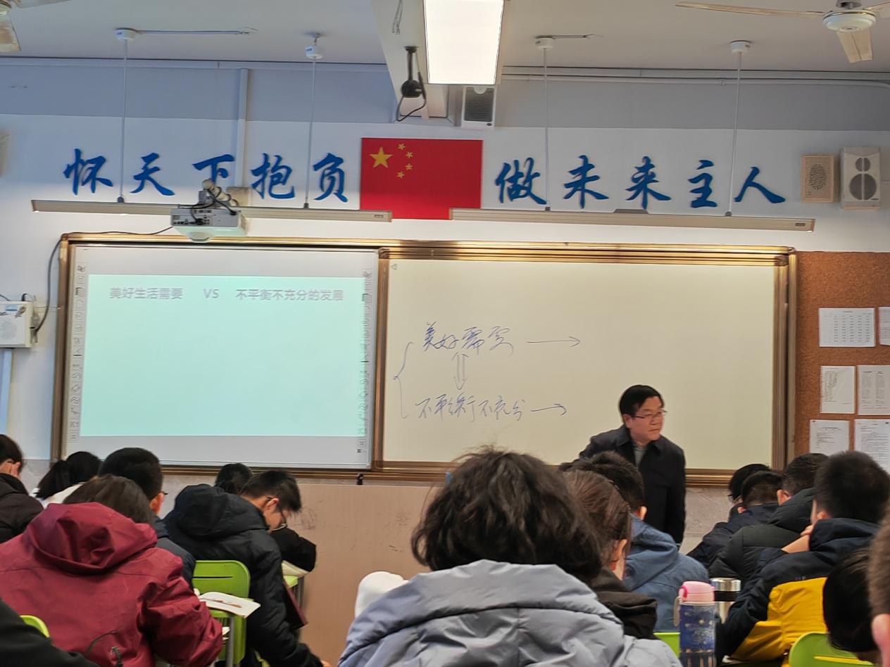 本网讯12月23日下午,我院思想政治教育专业部分本科生与研究生一行在傅文茹老师、张淑华老师带领下走进合肥一中张大勇副校长的思政课堂,大学与中学共研新课程标准理念下的思政课“议题式大单元教学”。本次交流研讨由合肥一中张大勇老师主持,分课堂教学展示、议题式教学思路分享、交流研讨三个阶段展开。