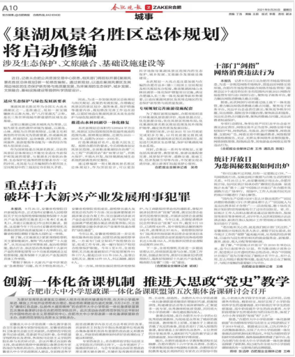 新闻动态 当前位置: 主页 >> 新闻动态 >> 正文 《合肥晚报》全程报道我校举办的“合肥市大中小学思政课一体化备课联盟第五次集体备课研讨会” 发布日期:2021-09-27 编辑:亚洲视频一区二区 核稿: 终审:刘艳 点击: 本网讯2021年9月24日,主题为“赓续红色血脉,弘扬伟大建党精神”的合肥市大中小学思政一体化备课联盟第五次集体备课研讨会在我校锦绣校区召开。此次会议由我校习近平新时代中国特色社会主义思想研究中心,合肥市大中小思政一体化备课联盟主办。出席研讨会的领导有安徽省大中小学思政课一体化教学委员会主任委员兼专家指导组组长,安徽省政协教科卫体委员会副主任刘新跃、合肥师范学院党委书记徐成钢、党委副书记吴昕春。合肥晚报,合肥晚报客户端,合肥教育视线公众号2021年9月26日星期日对本次研讨会和专家咨询会的相关内容进行了详细报道。 新闻网址链接:http://newspaper.hf365.com/hfwb/wap/content/202109/26/content_279294.html