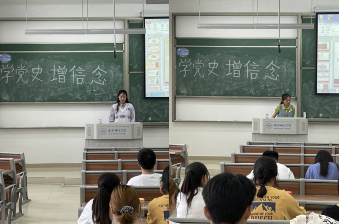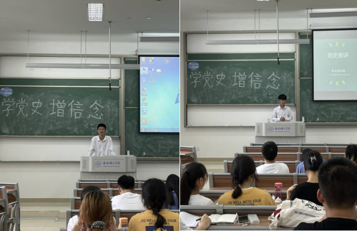 报告会上,2020级4位同学分享了学习党史的内容与心得。胡争通过党在不同历史阶段发生的重大事件,并不断带领人民从胜利走向胜利,说明了“中国共产党为什么能”。王良成以党在不同历史时期所形成的红船精神、井冈山精神、长征精神、西柏坡精神等为立足点,揭示了中国共产党一次次战胜各种艰难险阻的革命精神。