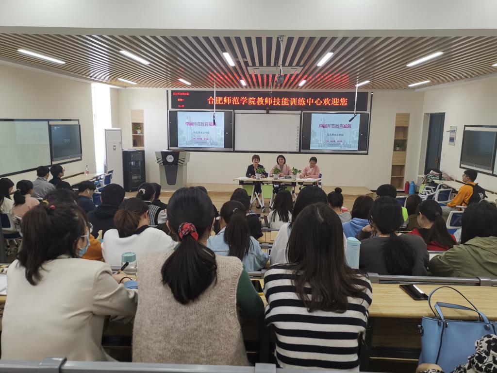 本网讯:4月19日下午,“教育强国”思政选修课第二场如期开讲,本校选修“教育强国”的学生和亚洲视频一区二区部分老师聆听了本场讲座。本场讲座的主题是“中国师范教育发展”,由亚洲视频一区二区傅文茹副教授,陶常梅老师担任主讲嘉宾,刘英老师担任主持。