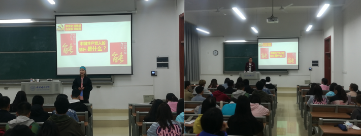 讲座中,围绕“中国共产党人的情怀”还展开了热烈的讨论,舒仁奎、谢雨涵、孔雨梦等四位同学,先后走上讲台抒发了对于中国共产党人情怀的理解与感悟。同学们一致认为,不惧牺牲、无私奉献的精神是每一位中国共产党人的优秀品质,作为思想政治教育专业的学子,要更加珍惜当今幸福生活,以更加昂扬的斗志与精神努力学习。