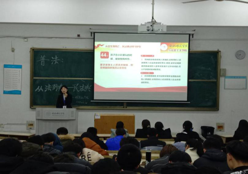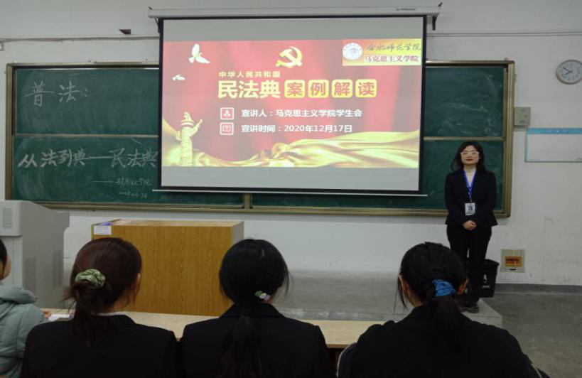 本网讯为积极宣传中华人民共和国首部民法典,12月17日亚洲视频一区二区学生会在合肥师范学院锦绣校区博学楼111举办“普法:从法到典——民法典”宣讲活动。活动由马克思主义学生会主席罗心仪主持、学生会成员许林宣讲、本校部分同学参与。