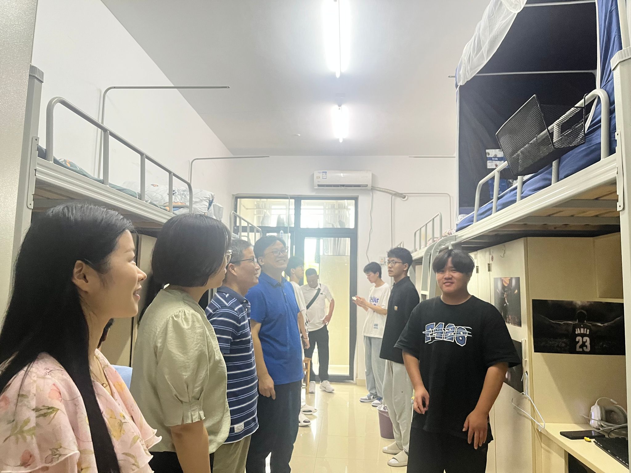 9月10日下午,亚洲视频一区二区党总支书记刘艳、院长何光辉、政法系主任周继祥、辅导员王萌前往宿舍看望新生,对新生表示深切的慰问和关心,对他们加入合肥师范学院亚洲视频一区二区大家庭表示热烈欢迎。每走访一个宿舍,院领导都会亲切地询问同学们来自哪里、兴趣爱好等,并仔细查看宿舍设施是否齐全。同时希望同学们能够和睦相处,营造和谐室友情;认真学习,争创学霸宿舍。