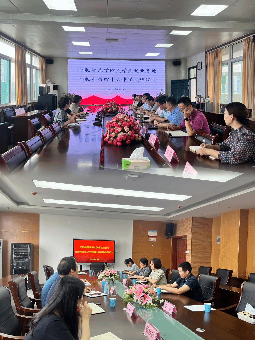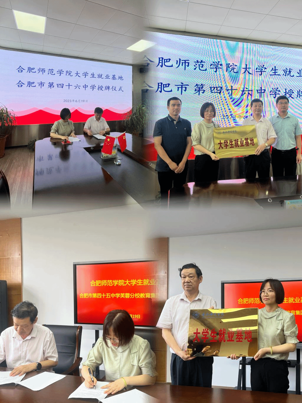 会后,学院与合肥四十六中、合肥四十五中芙蓉分校南校区举行共建就业基地签约和授牌仪式,刘艳代表学院与合肥四十六中、合肥四十五中芙蓉分校南校区签订了就业基地协议。