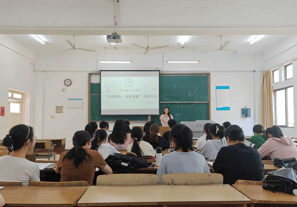 万般嘱托,主题班会话深情。学院召开2023届毕业生文明离校主题班会。班会上,毕业班辅导员王萌深情回顾了学生们成长的点点滴滴,同时对毕业生离校工作事宜进行布置与安排,要求同学们带走祝福,留下美好,文明离校、安全离校、有序离校。