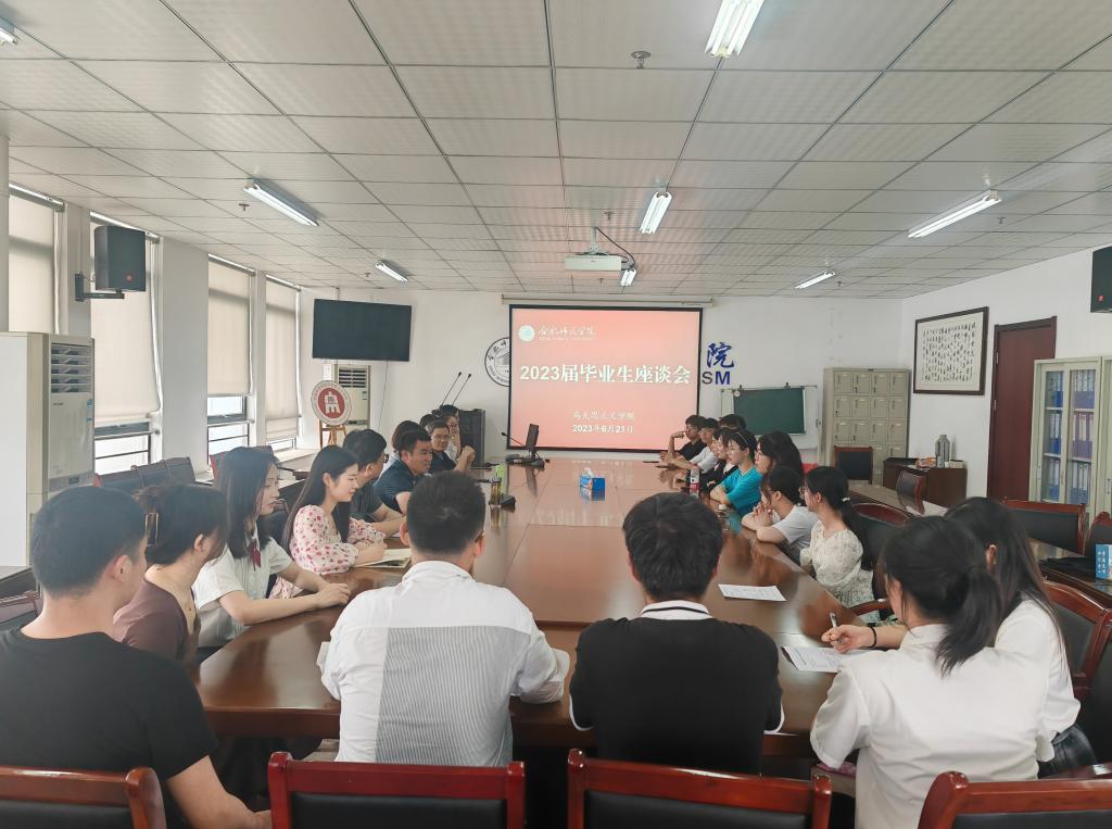本网讯 为深入了解思想政治教育专业应届毕业生“毕业要求”达成情况,倾听毕业生对学院发展的心声,为人才培养工作提供持续改进的参考,6月21日上午,学院在锦绣校区行知楼1610会议室召开2023届毕业生座谈会。学院党总支书记刘艳,党总支副书记、院长何光辉,政法系主任周继祥、毕业班辅导员王萌以及2023届毕业生代表参加会议。会议由学院副书记吴世红主持。