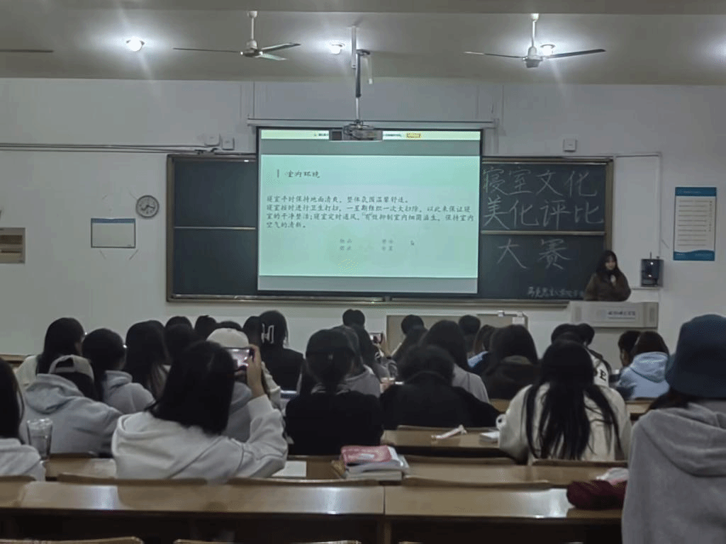 本网讯为了营造舒适良好的学习氛围、温馨整洁的寝室环境,提高学生寝室文明程度,进一步推动校园精神文明建设,展现当代大学生蓬勃进取的精神风貌,亚洲视频一区二区于2022年11月27日晚19:00在博约楼108开展寝室文化美化评比大赛。本次活动共有九组参赛人员。