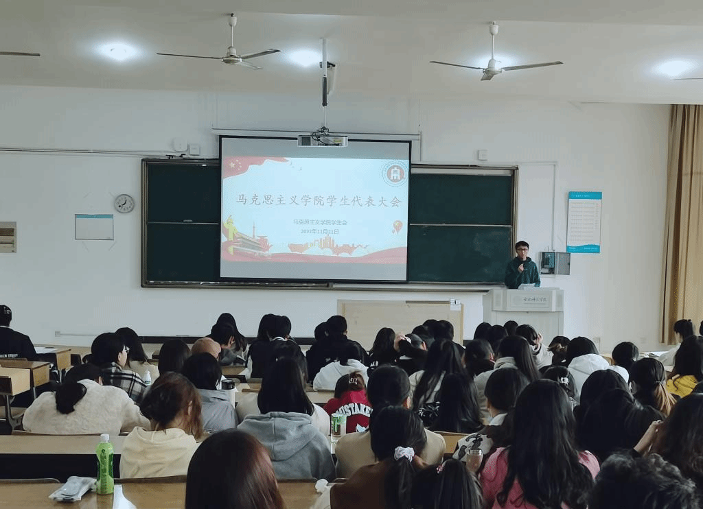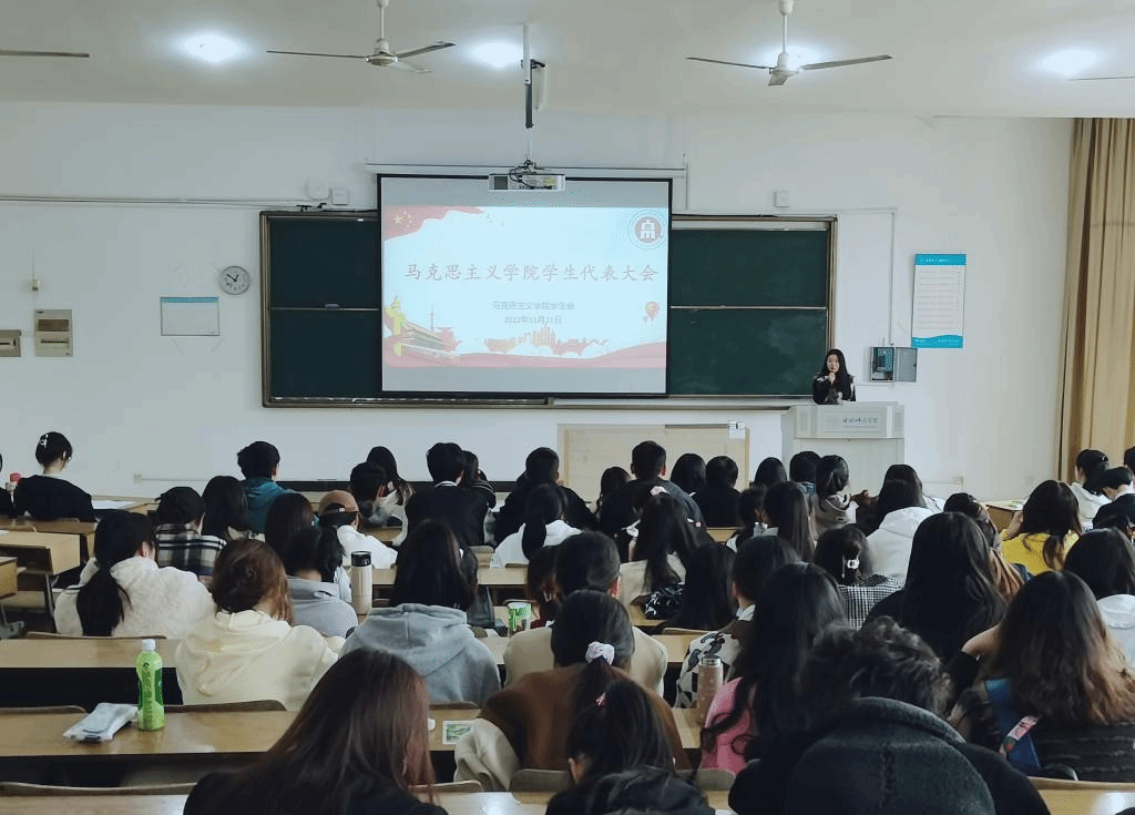 本网讯11月21日中午亚洲视频一区二区第二次团代表大会和第二次学生代表大会于锦绣校区博约楼108召开,由2021级思想政治教育班赵璟丽主持。辅导员王萌、各年级学生代表、部分学生会成员出席此次会议。