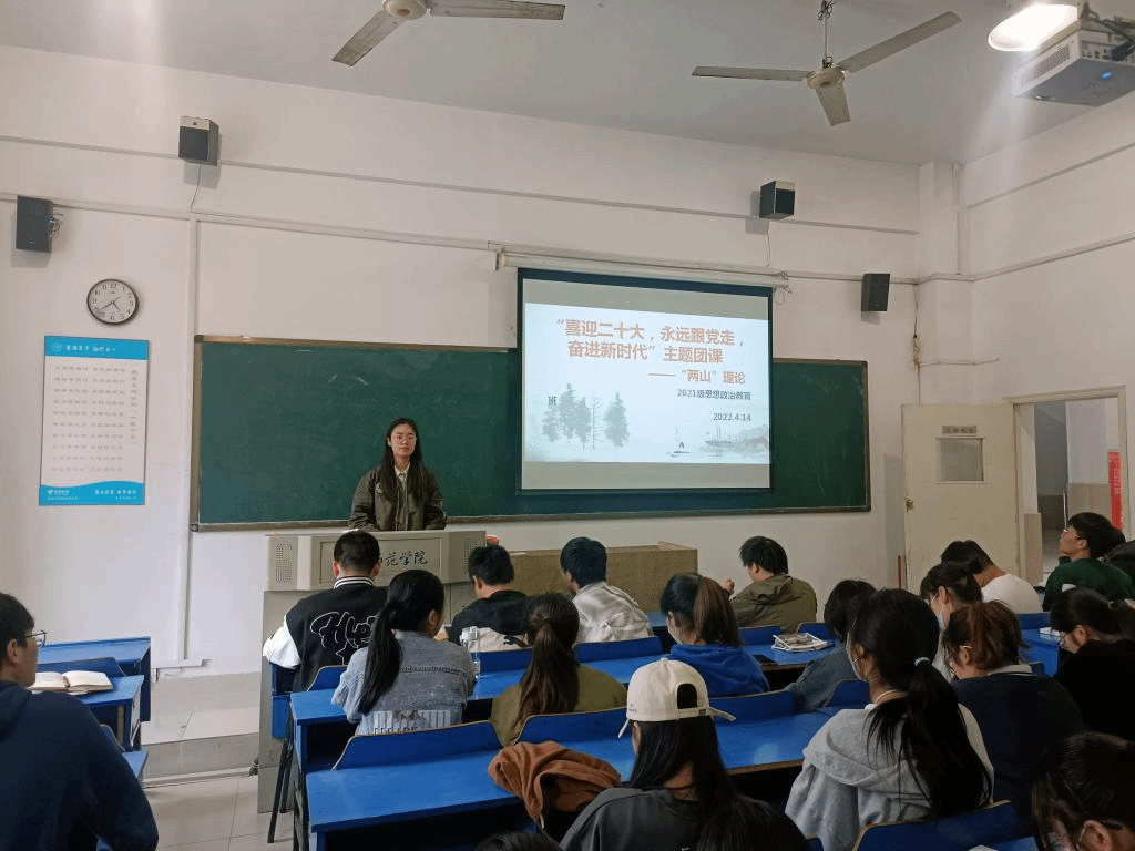 本网讯为庆祝中国共青团成立100周年,迎接党的二十大胜利召开。近日,亚洲视频一区二区2021级思想政治教育班于4月15日在博约楼104举行“喜迎二十大、永远跟党走、奋进新征程”主题团日活动。