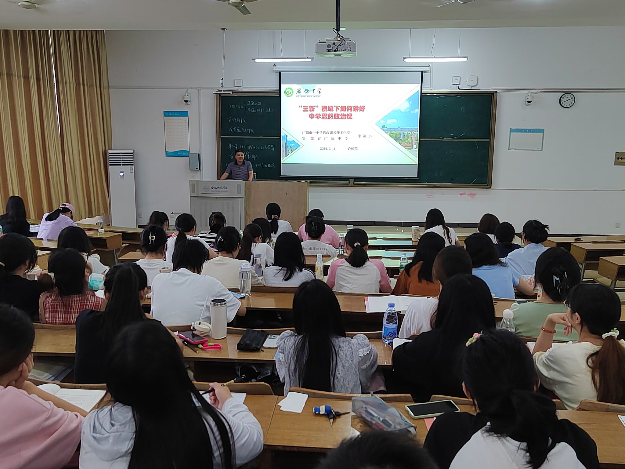 为拓展思想政治教育学生的培养路径,9月11日,来自安徽广德中学的特级、正高级教师李祖宇为我院锦绣校区2021、2022级思想政治教育和2023级学科(思政)班的全体同学讲授了基础教育对接课程。