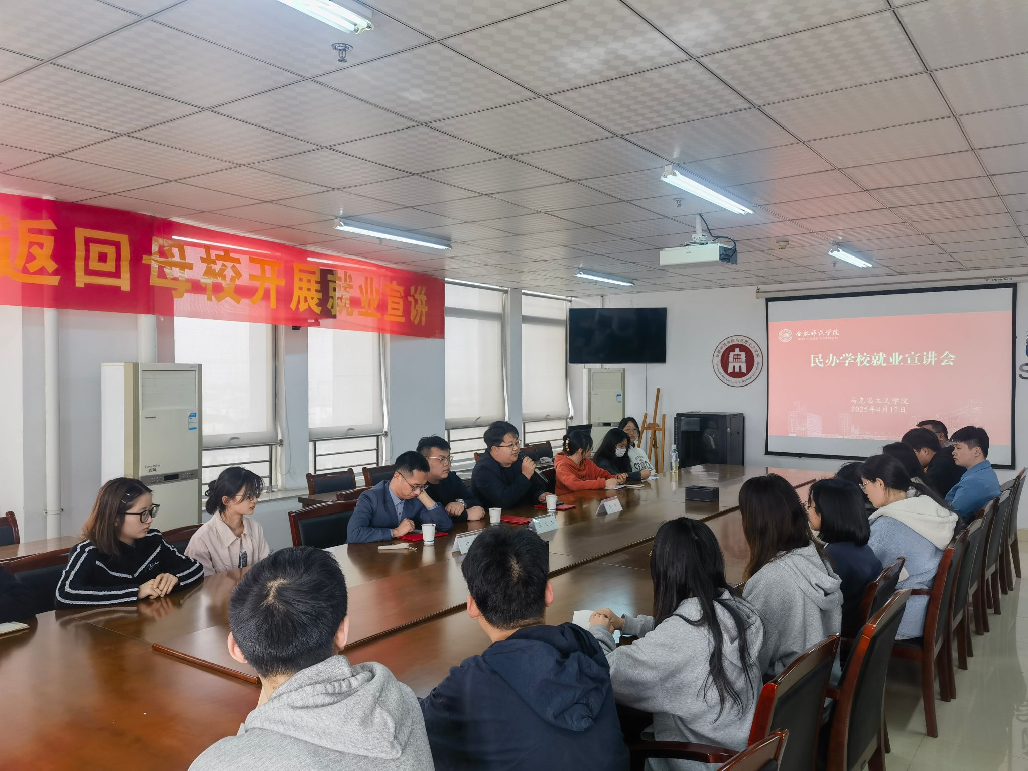 宣讲会上,何光辉致欢迎辞,对民办学校优秀校友的到来表示热烈欢迎。他指出本次就业宣讲会既是厘清同学们就业择业方面思想迷雾的重要助力,也是就业教育与马克思主义理论专业教育深入融合的创新实践,鼓励在场学子把握机遇,将个人成长融入民办教育事业中。
