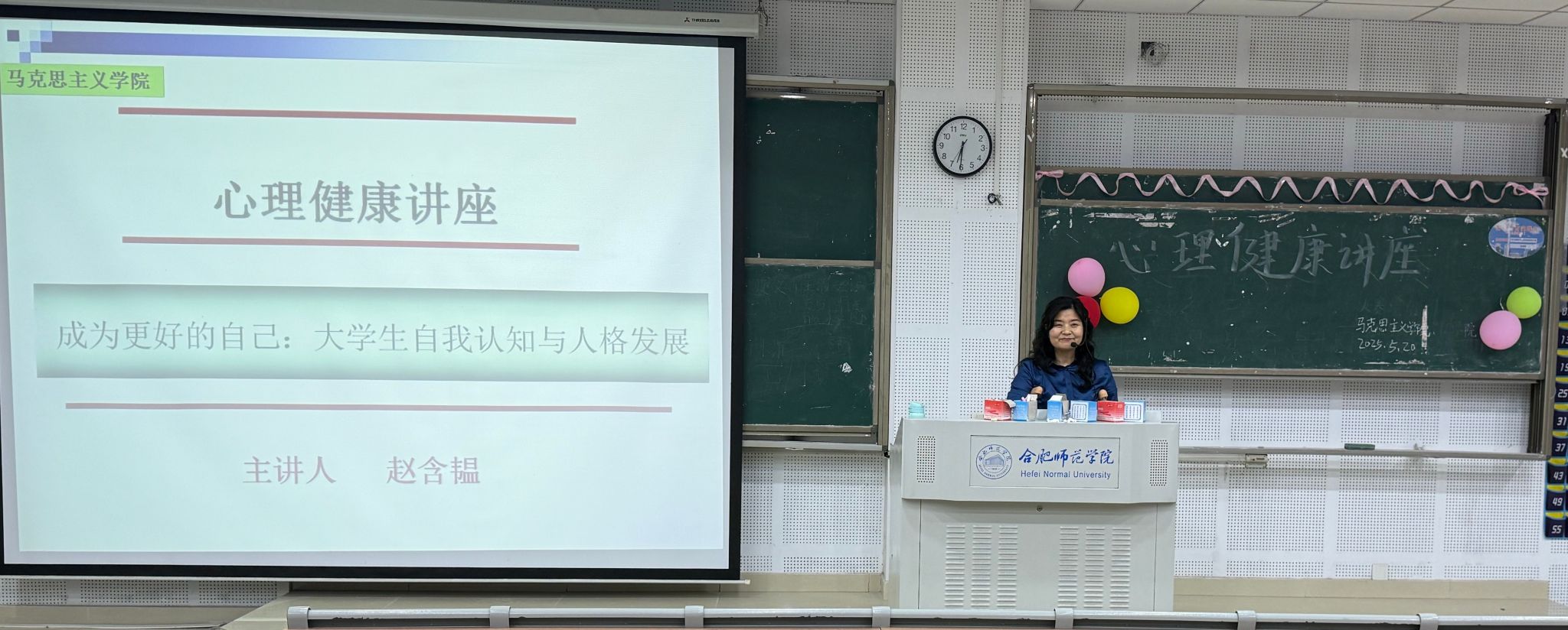 5月20日,学院在滨湖校区博学A108教室成功举办“悦心讲坛”心理健康教育专题讲座。本次讲座邀请学校心理咨询师赵含韫老师担任主讲,学院近200名师生代表到场聆听。赵含韫以“成为更好的自己:大学生自我认知与人格发展”为主题,通过案例分析、互动问答的形式,向同学们介绍了心理健康的含义、标准和重要性,分析了大学生常见的心理问题,阐释了自我认知与人格发展的相关理论,并提出了保持心理健康的主要途径和方法。