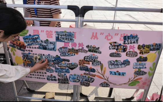 5月28日,一场别开生面的心理嘉年华——寻“答”之旅,从“心”出发活动在滨湖校区顺利开展。活动以"翻书寻答案"和“答案拼贴诗”的创意形式,参与者通过自主翻动特制书籍,在随机出现的段落中选取文字片段进行自主创作。当参与者看到不同经历却相似困惑的文字组合成完整诗篇,能够直观感受到"共鸣产生力量",有效消除孤独感与无助感,引导参与者直面现实生活中的学业压力、人际关系、职业发展等心理困扰。