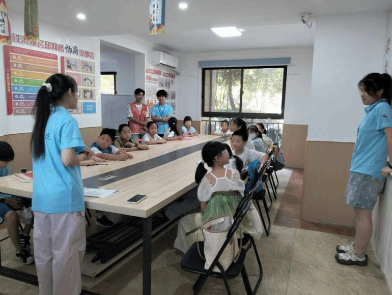 仪式现场,小先生们依次上台进行自我介绍和特色课程介绍,与现场热情的小学员们友好互动,赢得了家长们的积极支持。小先生代表丁亦翔郑重接过学堂旗帜并宣誓,承诺将践行行知精神,用心服务社区学员。小学员们也纷纷表达了对即将开始的丰富多彩课程的期待。