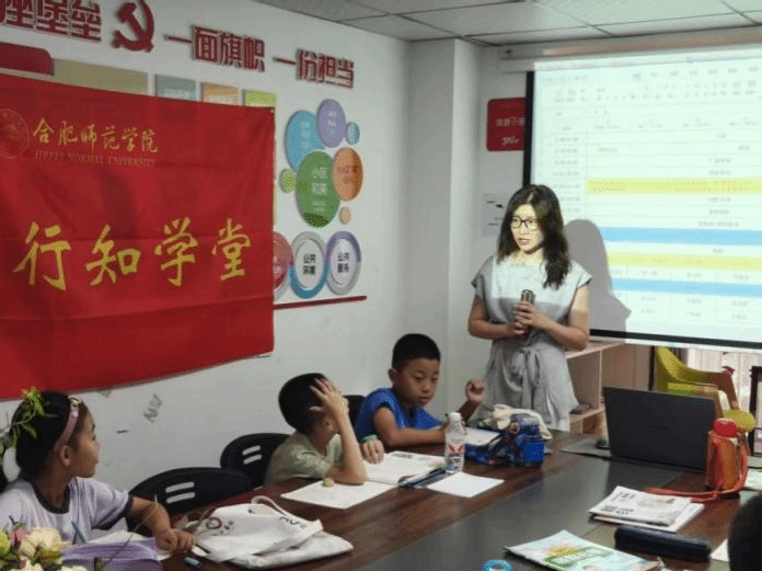 7月4日上午,学院与包河区烟墩街道杭川社区共建的"芯"向未来-微格行知学堂开班仪式分别在杭川社区下辖的旭辉·御府、中铁·滨湖名邸红领哨所举行。