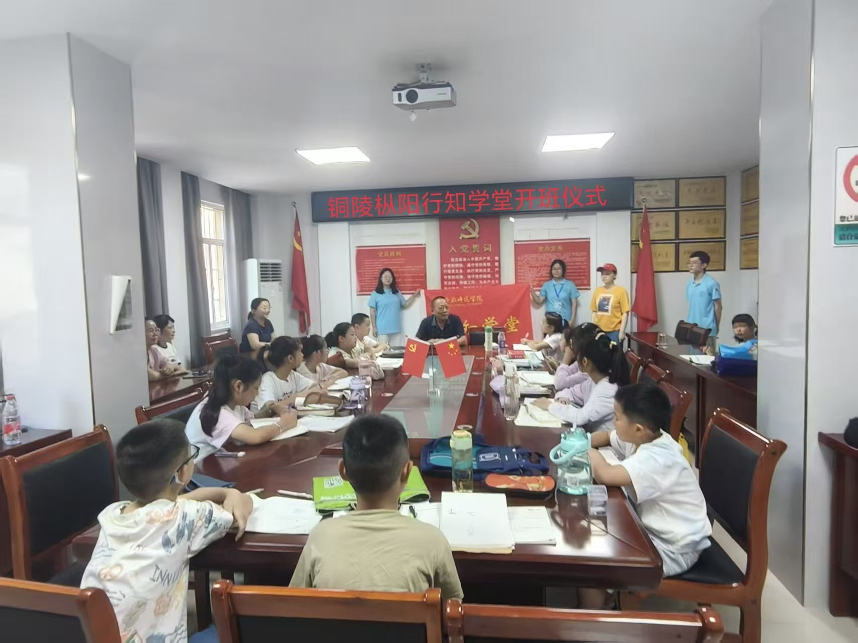 7月8日上午,亚洲视频一区二区枞阳行知学堂在铜陵市枞阳县老庄社区党支部顺利开班。铜陵市枞阳县老庄社区党支部书记方仙华,社区负责人褚倩,学堂全体“小先生”、小学员及其家长等30余人参加开班仪式。