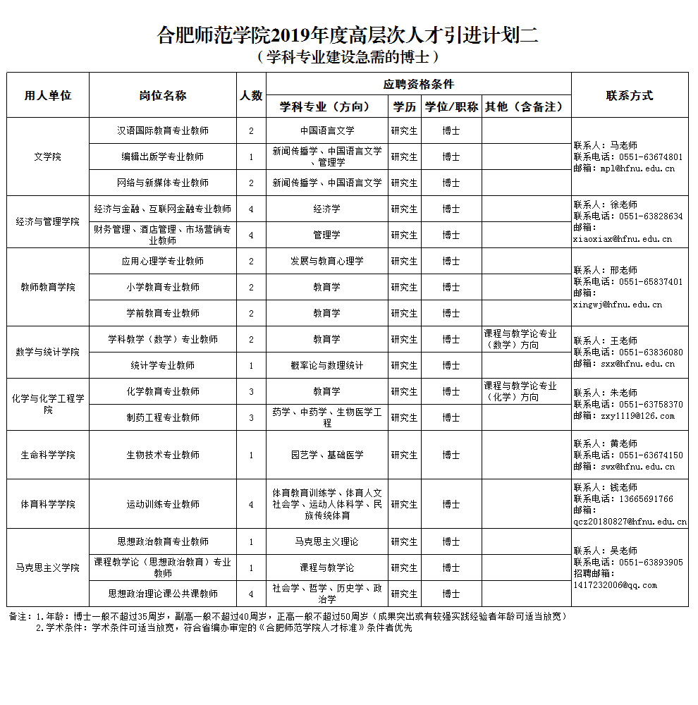 1.合肥师范学院2019年度高层次人才引进计划一