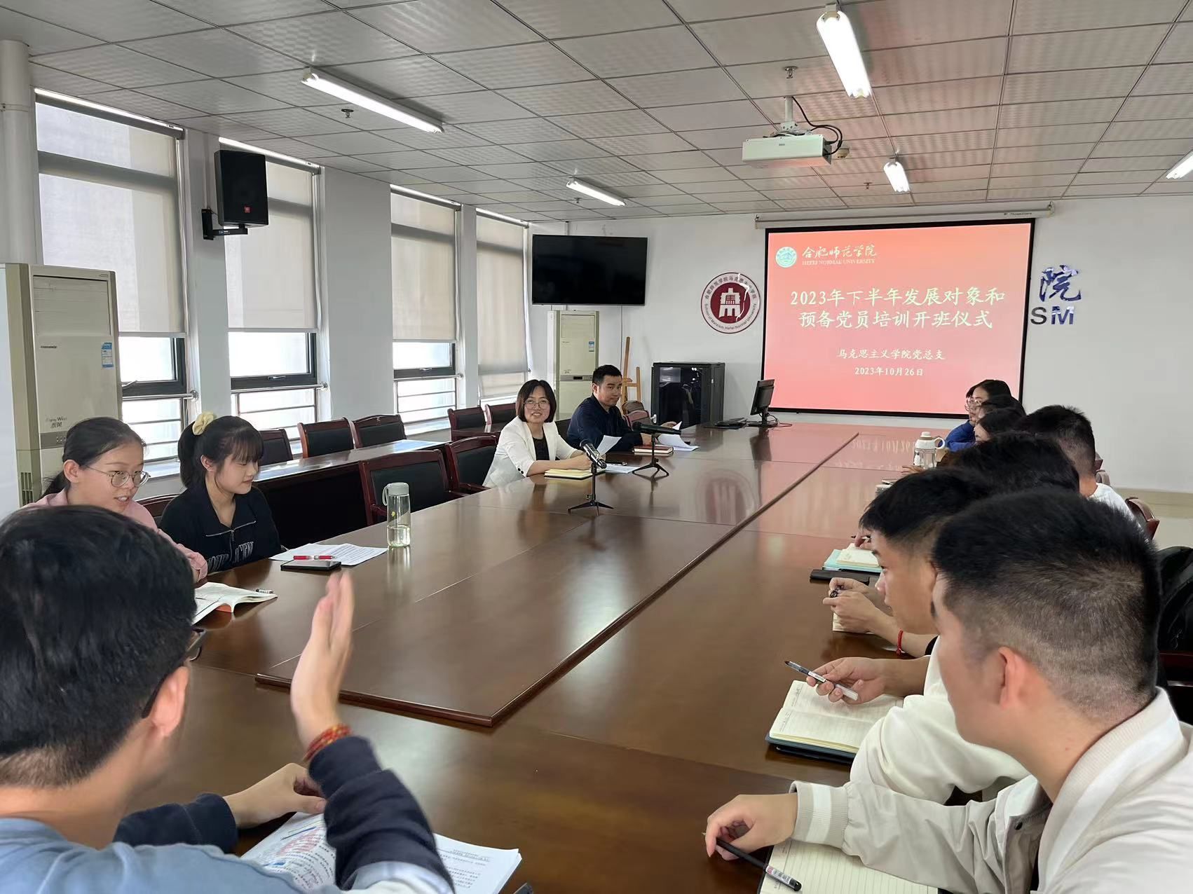 为进一步做好学院发展党员工作,强化党员教育管理,把好党员发展的“思想关”和“入口关”,10月26日中午,学院在行知楼1610室举办2023年下半年发展对象和预备党员培训班开班仪式。院党总支书记刘艳、党总支副书记吴世红、班主任郭嘉及全体培训班学员参加仪式。仪式由吴世红主持。