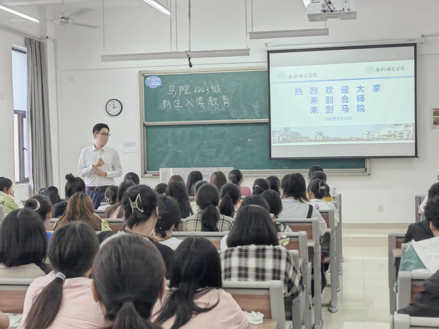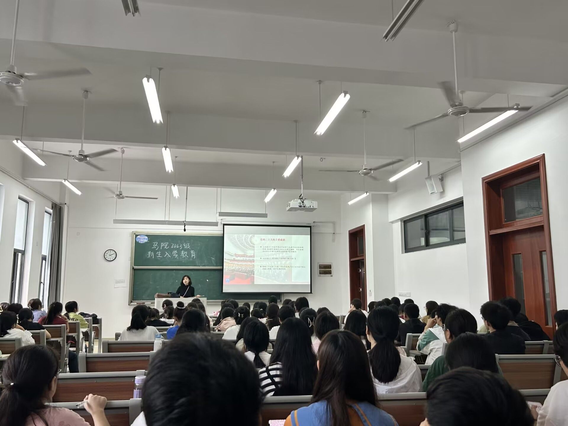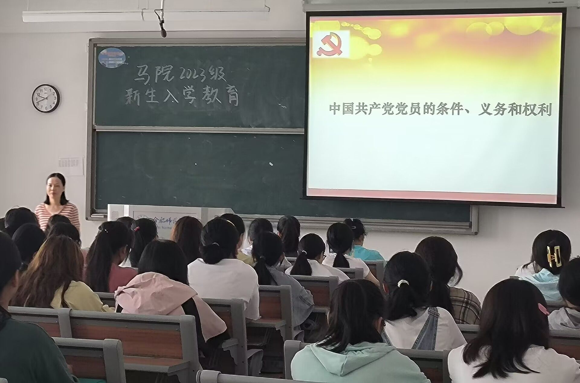 石春梅老师从党的基本知识、端正入党动机、入党故事分享、入党流程介绍等方面为新生们讲授了一堂通俗易懂、深入浅出的入党启蒙教育专题讲座。她希望所有马院学子们能够从党的百年奋斗史中汲取前进力量,从革命前辈身上感受道德风范,激励新生们在日常学习生活中严格要求自己,不断提高自身政治素养和综合素质,端正入党动机,争取早日成为合格的共产党员。