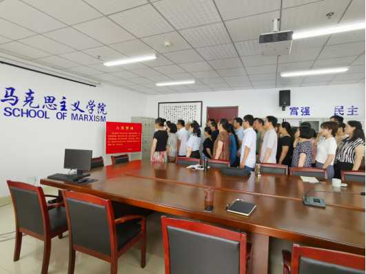 下午,党总支召开党员大会,组织全体党员教职工重温入党誓词并开展党课活动。大会伊始,全体党员举起右手,进行庄严宣誓。