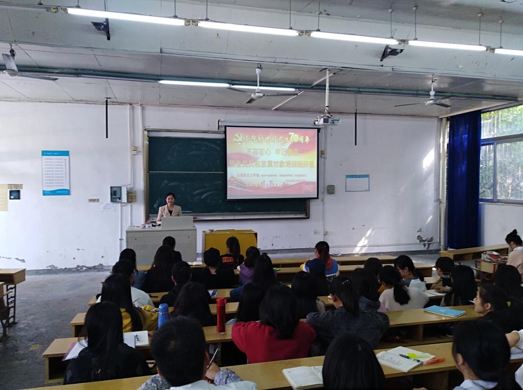 本网讯10月17日中午,我校三孝口校区“不忘初心、牢记使命”学生预备党员和发展对象培训班开班仪式暨第一次授课在西阶教室举行。亚洲视频一区二区党总支书记吕田力出席,全体学生预备党员和发展对象参加。吕田力讲授开班第一课。