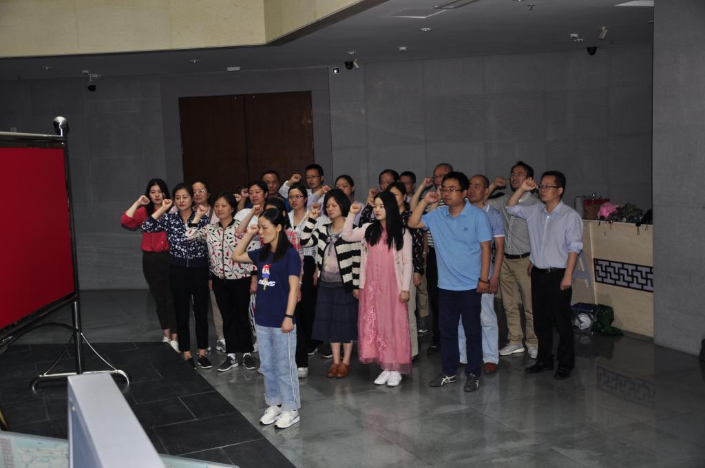 大家满怀敬意,在党旗下举行了庄严的“重温入党誓词”活动。