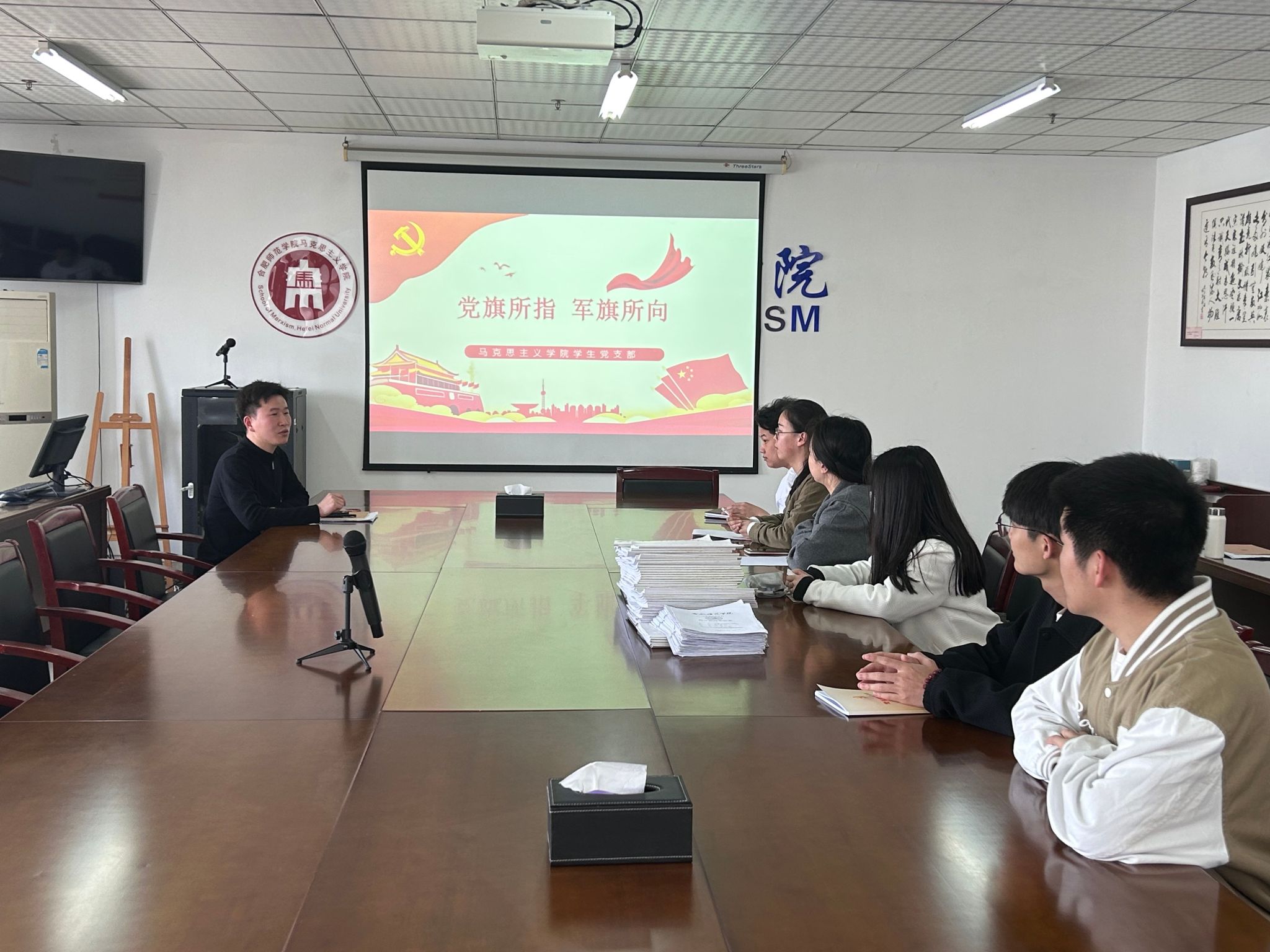 活动伊始,王宗双老师对在场学生党员的基本情况做了基本了解,并强调党课的重要性,激励同志们加强理论学习,提升理论素养。随后,王老师带领大家回顾我国抗日战争、解放战争、抗美援朝等战争,思考我军在技术装备与物质保障上并不领先甚至严重落后,却经受住各种考验,不断从胜利走向胜利。以一个思考题引入本次党课主题,也就是坚持党对人民军队的绝对领导。
