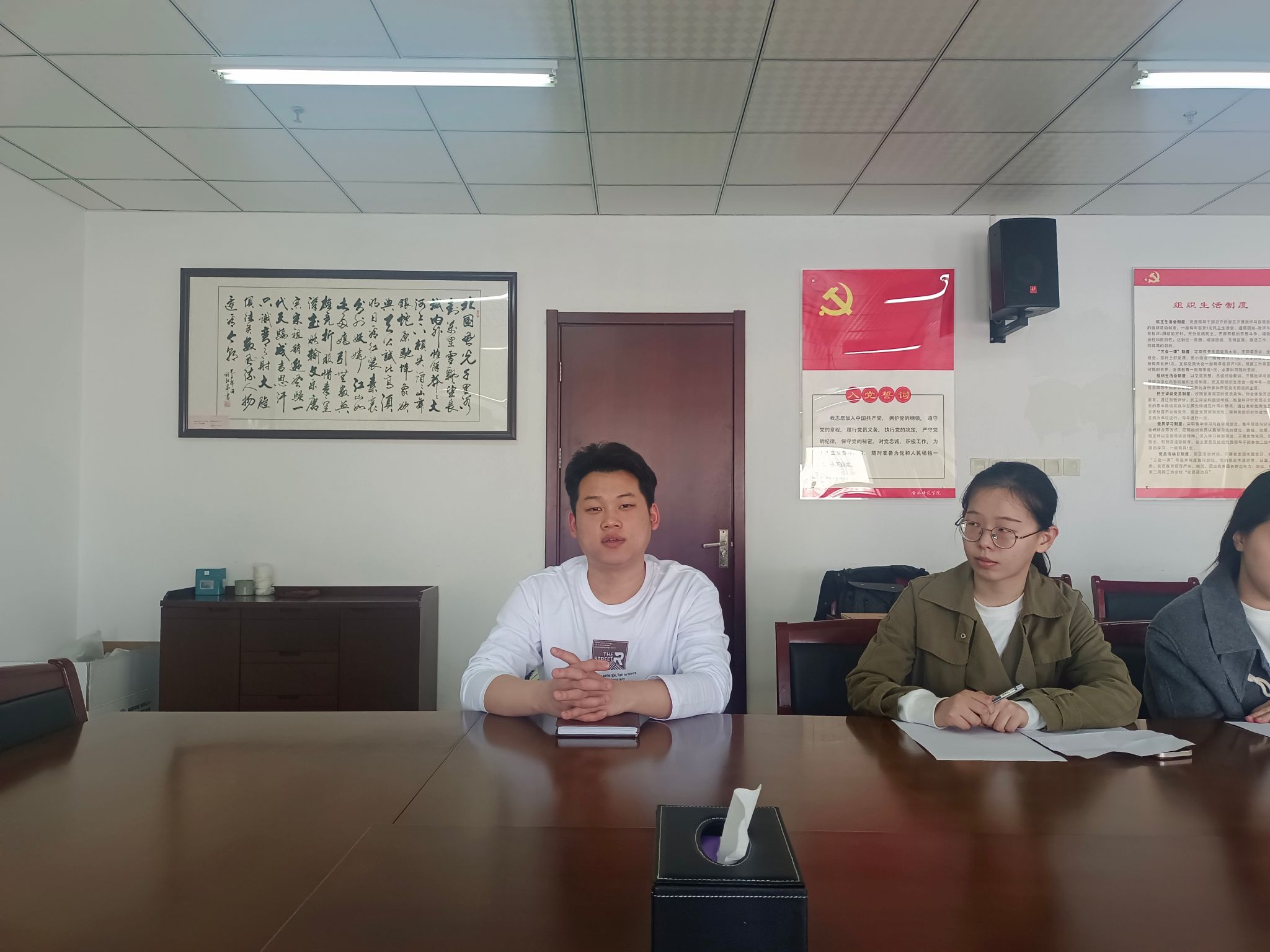 随后,两位学生党员结合自身实际谈了谈自己的感想与启发。刘会龙同志针对老师讲的内容,感悟人民军队走向胜利彰显了党的领导的伟大力量,要听党话、跟党走,筑牢思想根基。侯静雯同志根据自身考研经历,提到对党史的学习会面对记忆不深刻,不理解的情况,可以进一步查阅资料,对历史形成全面的理解,提高学习效率。
