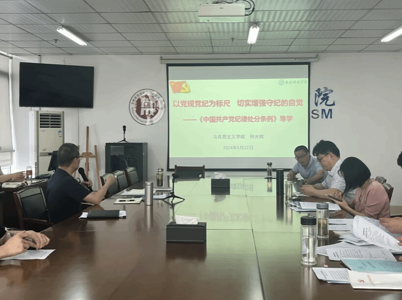 为推动党纪学习教育走深走实,5月22日下午,学院在行知楼1610会议室召开党支部书记工作会议推进党纪学习教育,学院党政班子成员和党支部书记参加会议。会议由院党总支副书记吴世红主持。