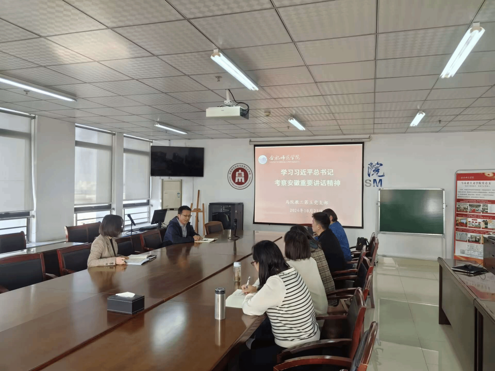 10月13日下午,亚洲视频一区二区教工第五党支部在行知楼1610室召开支部大会,开展主题党日活动,认真学习习近平总书记考察安徽重要讲话精神,活动由支部书记俞小和主持。