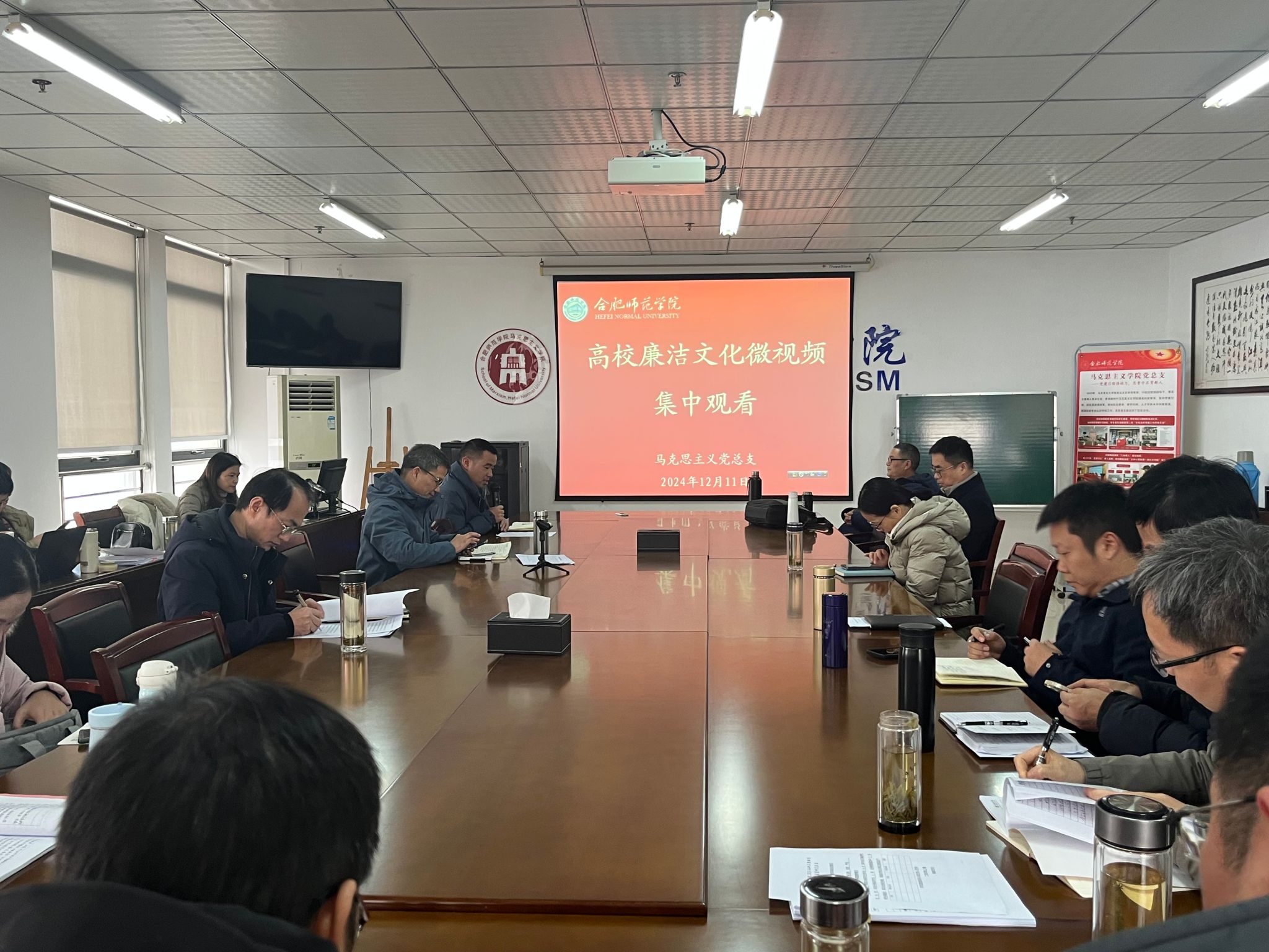 随后,进行了警示教育。全体教职工集中观看高校廉洁文化微视频,视频通过真实案例和生动情节演绎了高校工作人员腐败行为对个人、家庭和社会带来的巨大危害。