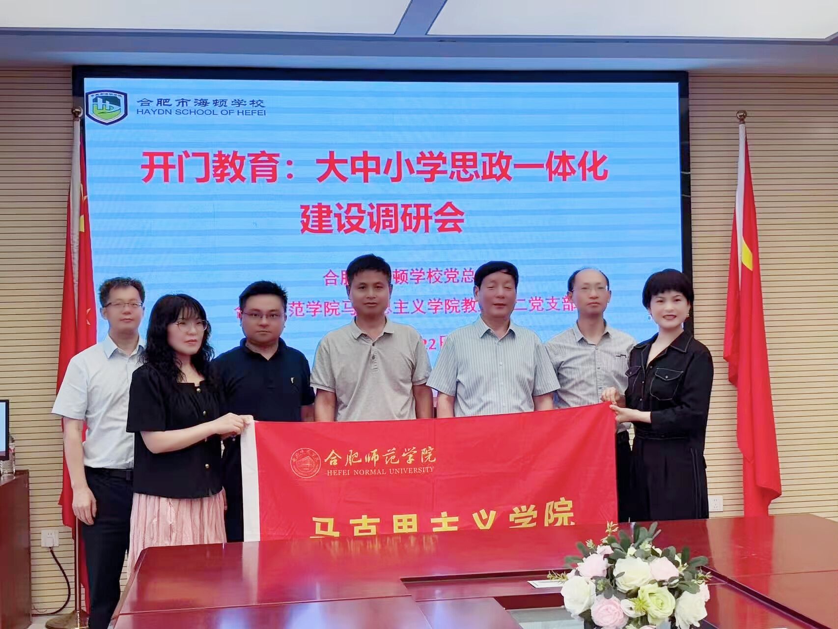 2025年5月22日下午,亚洲视频一区二区教工第二党支部党员教师赴合肥市海顿学校开展主题党日活动。合肥市海顿学校党总支书记陈昌云,校长朱霖及副校长周元忠,包河区教研员朱传良主任参加了本次活动。