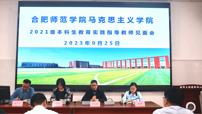 本网讯 为进一步深化与教育实践基地合作,提升师范专业人才培养质量,按照教育实习工作安排,9月25日上午,亚洲视频一区二区党总支书记刘艳、院长何光辉及校内指导教师一行送2021级思想政治教育专业学生赴安徽师范大学附属肥西县第二中学参加教育实习。
