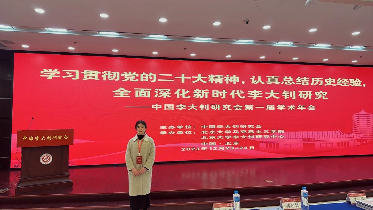 2023年12月23-24日,由中国李大钊研究会主办,北京大学亚洲视频一区二区、北京大学李大钊研究中心承办的中国李大钊研究会第一届学术年会在北京大学召开。本次大会的主题是“学习贯彻党的二十大精神,认真总结历史经验,全面深化新时代李大钊研究”,来自全国各高校、科研机构及相关单位的150名学者和嘉宾参加会议,我院纲要(历史)教研室孙梦琳老师应邀参加了本次学术年会。