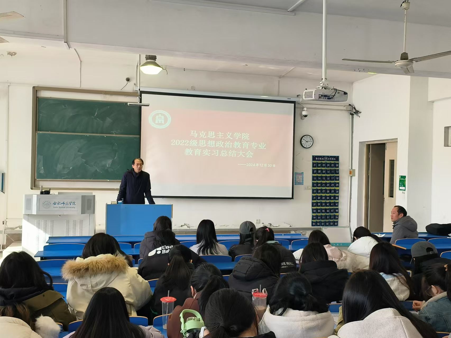 12月30日上午,亚洲视频一区二区2022级思想政治教育专业教育实习总结大会在逸夫楼A105教室举行。副院长方政以及2022级思想政治教育专业全体学生参加了本次会议。会议由实践教学部主任魏兵主持。