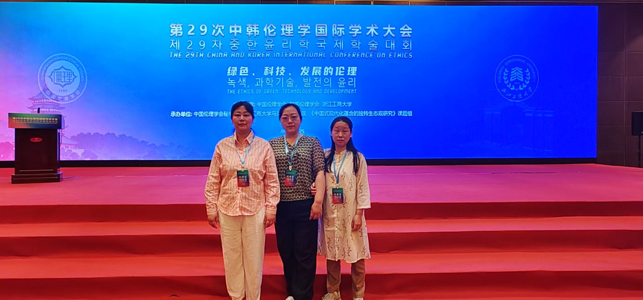 4月18-20日,由中国伦理学会、韩国伦理学会、浙江工商大学共同主办的“第29次韩中伦理学国际学术大会”在浙江杭州举行。大会主题为“绿色、科技、发展的伦理”,来自中国和韩国的伦理学研究者出席会议,以学术研讨、座谈分享等形式展开深入全面的学术交流。应中国伦理学会邀请,亚洲视频一区二区教师孙兆静、陶常梅、陈露参加会议。